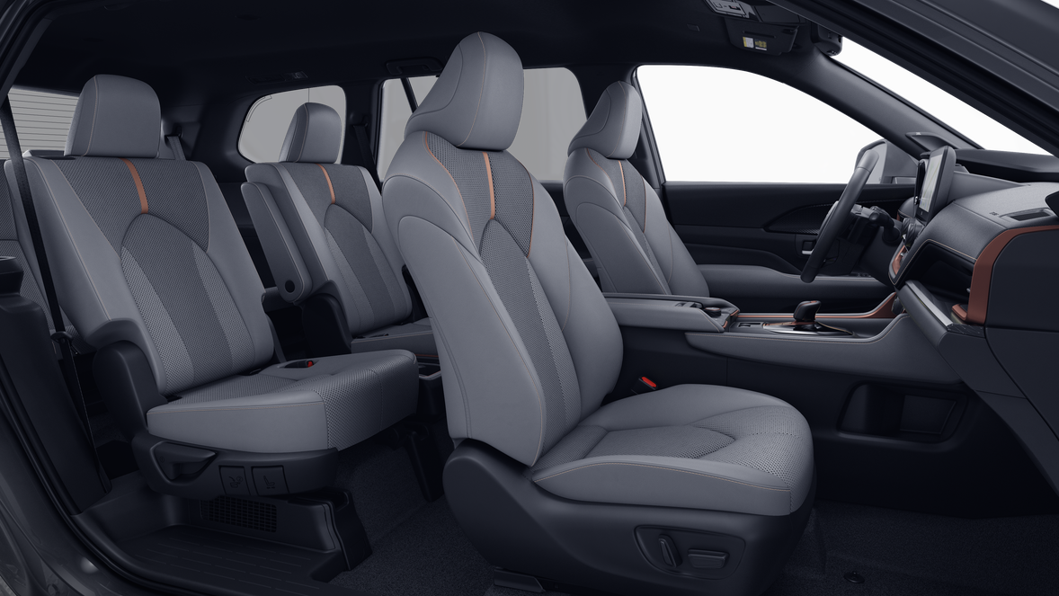 • Leather-trimmed with Ultrasuede® 67 front- and second-row seats; heated and ventilated front seats; 10-way power-adjustable driver's seat including power lumbar support; 8-way power-adjustable front passenger seat; seat memory function
