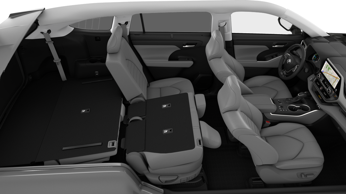 - 7-passenger seating with second-row fold-down captain's chairs and fold-down inboard armrests, adjustable headrests and two cup holders mounted on the floor; and 60/40 split, fold-flat third-row seats with sliding headrests and recline function