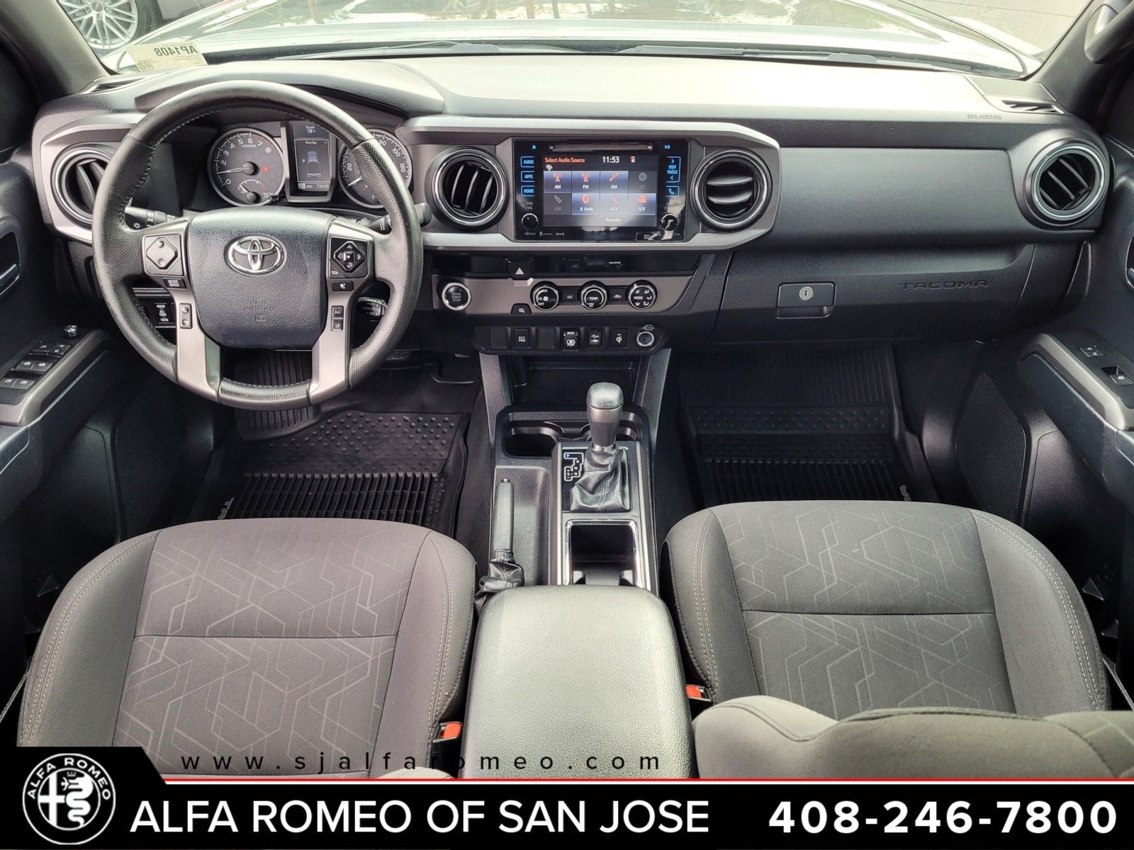 Inside, the dark gray interior is durable, functional, and designed to handle daily use with ease. The cabin layout is straightforward and comfortable, offering supportive seating and practical storage throughout. Everything feels solid and purpose built, staying true to Toyotas reputation for trucks that last.