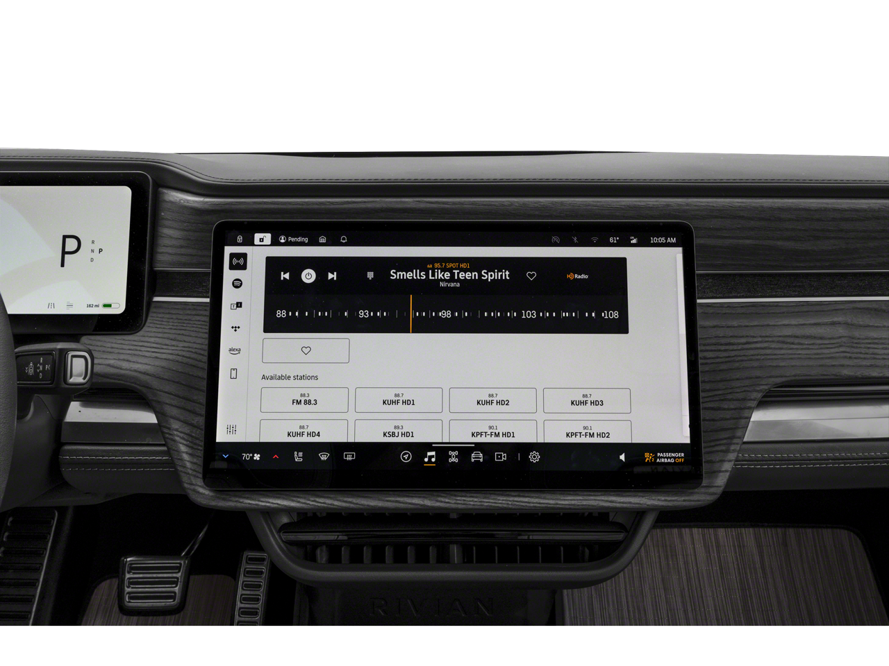- Radio: New Rivian Elevation Audio -inc: a common 1200-watt, 18-channel amplifier